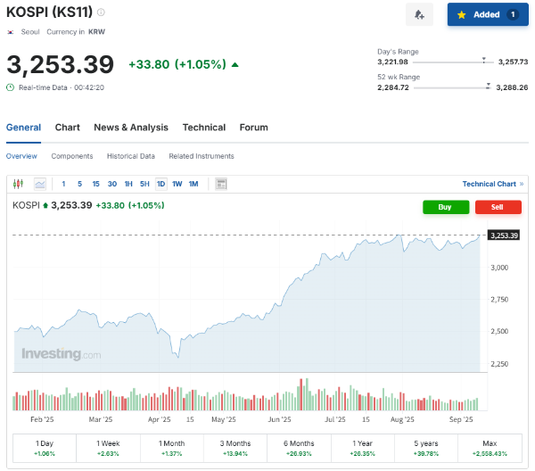 | KOSPI | 약 3,250 | 장중 강보합, 3,200선 중심 |