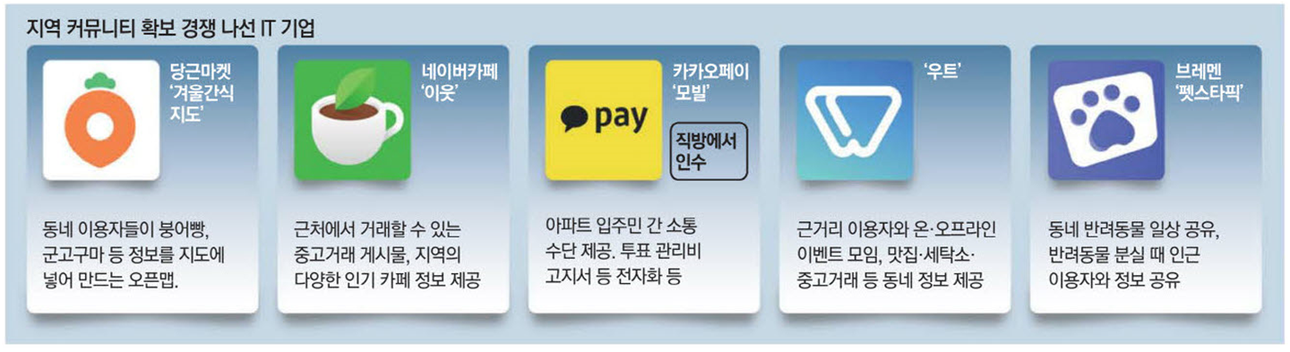 지역 커뮤니티는 오프라인과 접점이 필요해 이용자를 모으는 기회가 되고 있다. 전자상거래 등 사업화에 유리하고, 데이터 가치도 높다.