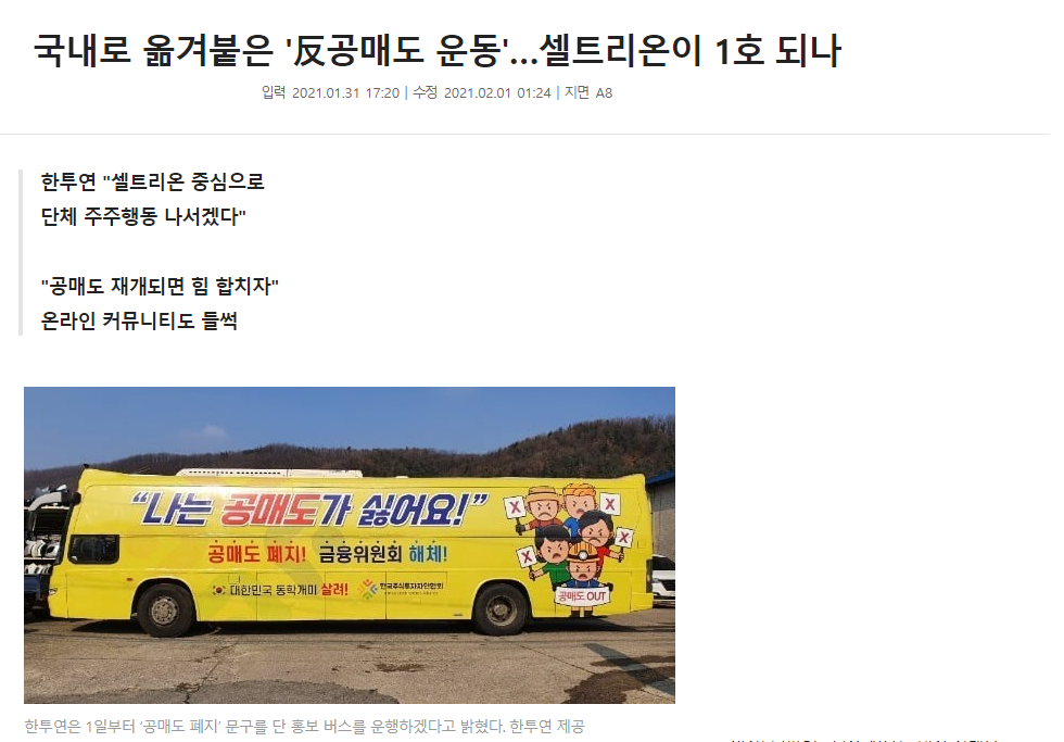 ※ 참고한 기사 2. 국내로 옮겨붙은 '反공매도 운동'…셀트리온이 1호 되나