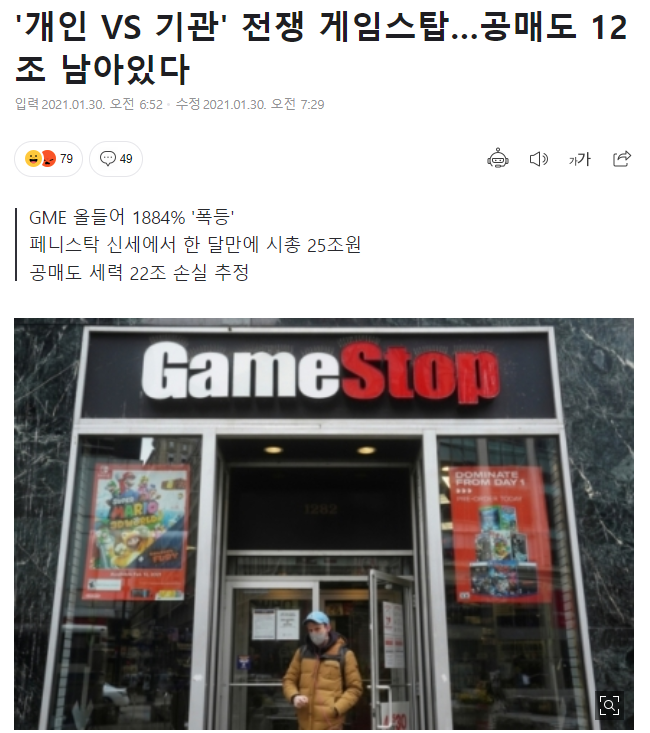 ※ 참고한 기사 1. '개인 VS 기관' 전쟁 게임스탑...공매도 12조 남아있다