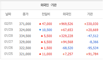 셀트리온이 2월 첫 개장일인 어제 하루 동안 14.51% 급등했다. 종가는 37만1000원으로 전일(1/29) 32만4000원 대비 47,000원이 올랐다. 어제 급등으로 셀트리온 시가총액은 43조에서 50조대로 껑충 뛰었다.