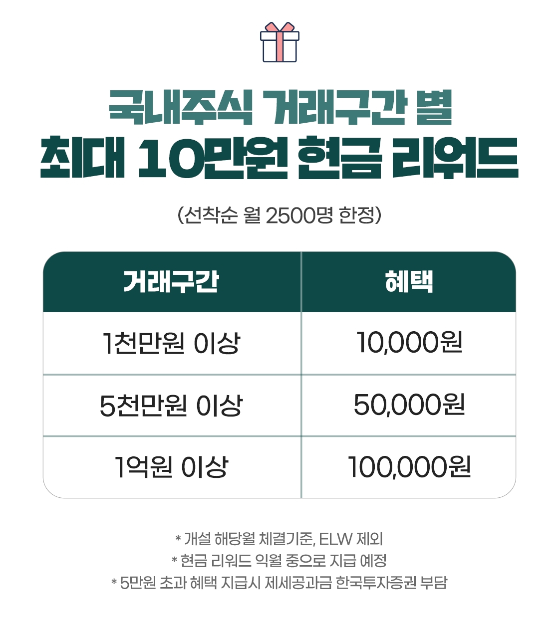 ✔️ 계좌개설 이벤트: 거래구간별 현금 지급 (~2022.12.31.)