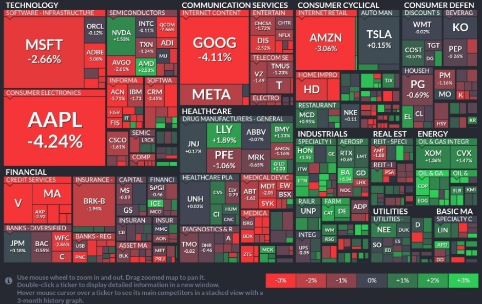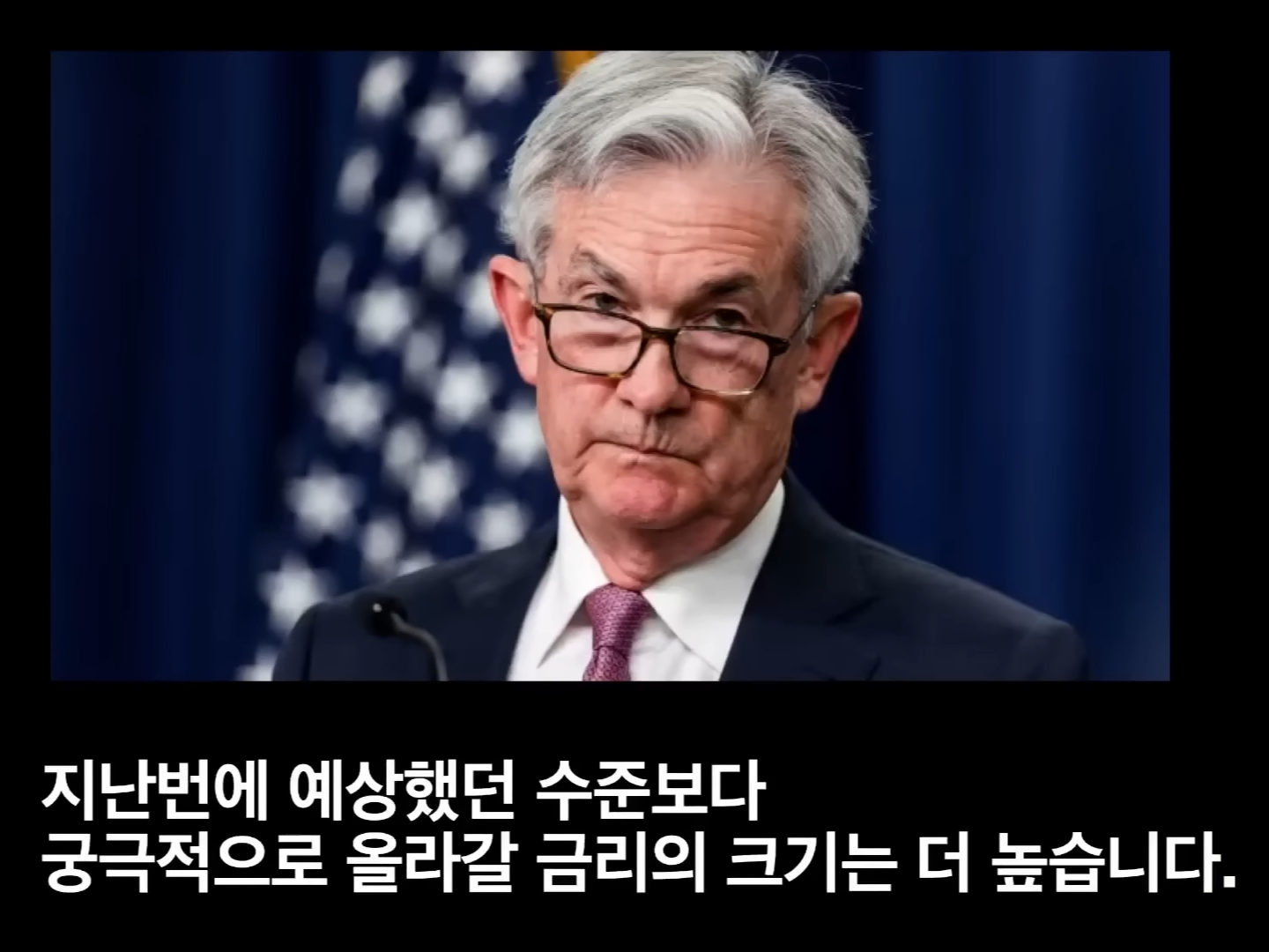 여전히 물가가 높고 인플레이션이 잡히지 않았는데, 통화정책을 완화한다는 시장의 기대를 여지없이 꺾어버린 연준 제롬 파월 의장의 발언이 이어졌기 때문이다. 한 마디로 갈 길 계속 가겠다는 것이다. 물가 안정이라는 중앙은행 본연의 의무를 충실히 이행하겠다는 것. 금리인상 속도는 조절할지언정, 그 고점은 더욱 높을 것이라는 워딩에 미 증시는 아연실색했다.
