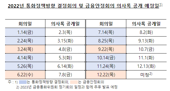 📌 한국은행 금리인상 시기 및 2022년 향후 주요 경제 일정