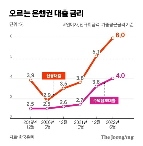 예대 금리차에 따른 예대 마진이 시중 은행들의 주 수입원인 만큼, 예금 금리보다 대출 금리 오르는 속도가 훨씬 빠를 수밖에 없다. 주담대 금리는 COFIX에 시중 은행의 가산금리를 더해 산출한다. 가산금리가 은행의 마진이다. 긴축과 경기침체에 대비하는 은행들이 고 마진(높은 가산금리)에 대한 니즈가 커질 수밖에 없는 이유다.