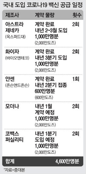 정부는 현재까지 3600만명분, 총 6600만회분에 해당하는 코로나19 백신에 대한 구매 계약 체결을 완료했다.