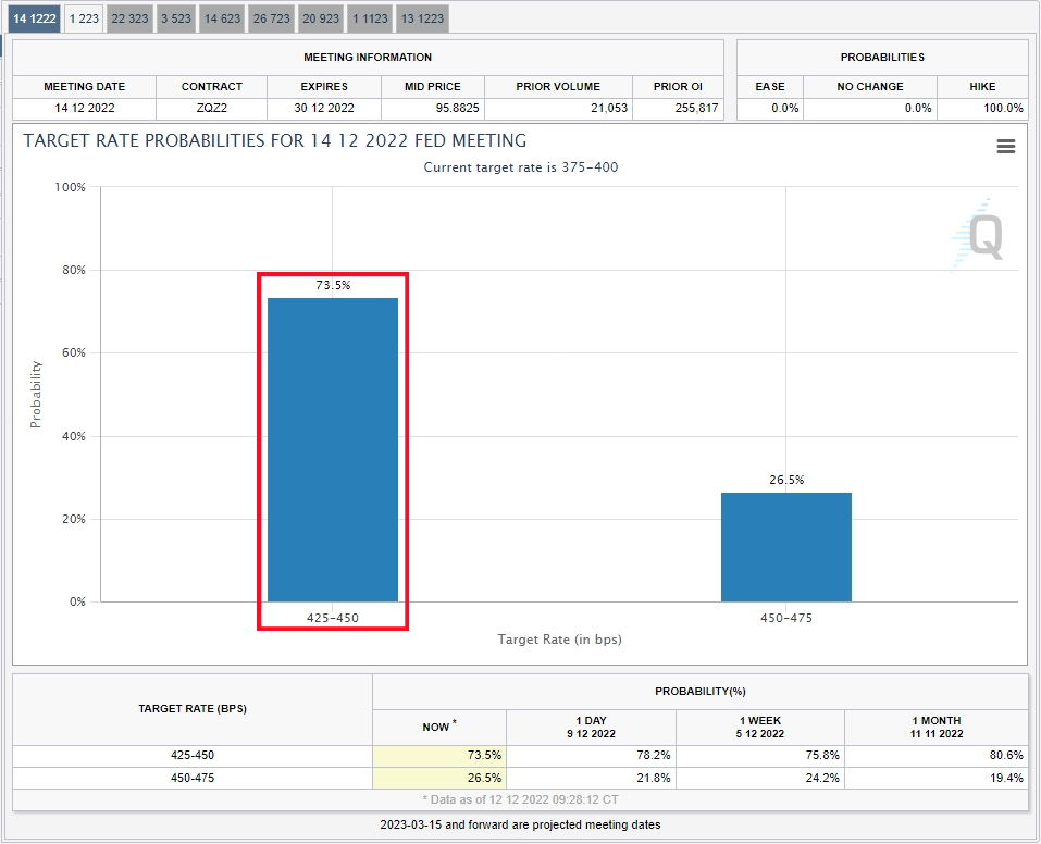 현재 대부분의 업계 관계자들은 5% 이상이 될 것으로 전망하고 있다. 5.25% 초과 시 내년 첫 FOMC 일정(현지 기준 1/31 - 2/1) 때에도 빅스텝 금리인상을 밟을 공산이 커지므로 증시가 또다시 요동칠 전망이다.