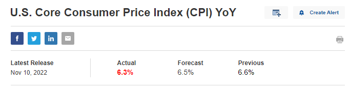 참고로 지난 11월 10일에 발표되었던 10월 CPI 지수(YoY)는 예상치 8.0%에 실제 7.7%, Core CPI(YoY)는 예측치 6.5%에 실제 6.3%로 발표되어 서프라이즈를 기록했다.
