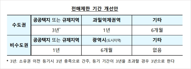(비수도권) 공공택지(분양가 상한제 적용) 및 규제지역은 1년, 광역시 도시지역 6개월, 그 외 지역 전면 폐지