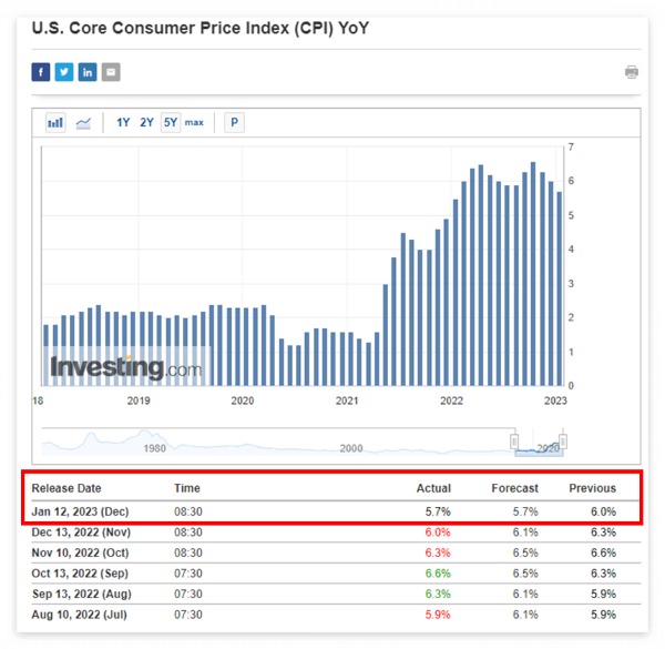 식음료와 에너지를 제외한 근원 소비자물가 Core CPI 발표 역시 예상치 5.7%에 부합하는 수치가 나왔다. 주식시장 입장에선 전반적으로 만족스러워할 만한 수치다.