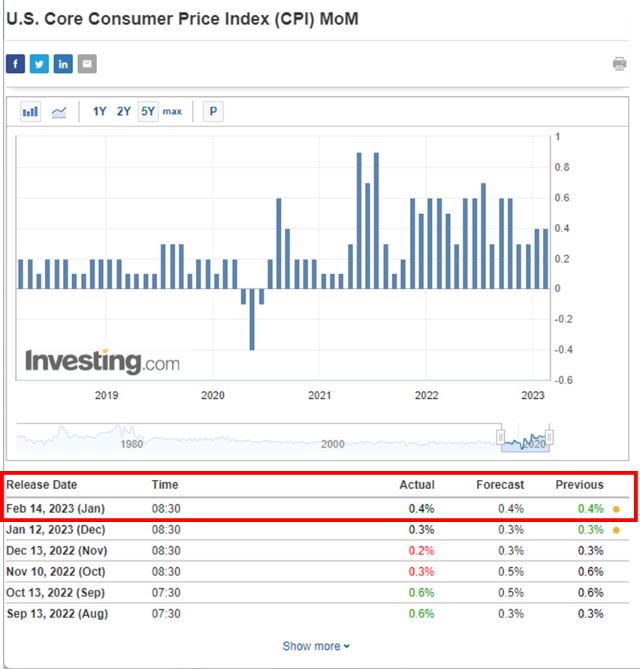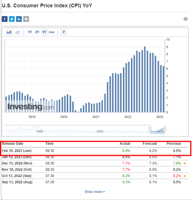 2023년 2월 14일 08:30(우리나라 기준 14일 22:30)에 1월 미국 CPI 소비자물가지수가 발표되었으며, 중요한 것은 CPI 지수 그 자체보다 전월대비(MoM), 전년대비(YoY) 변화량이다.