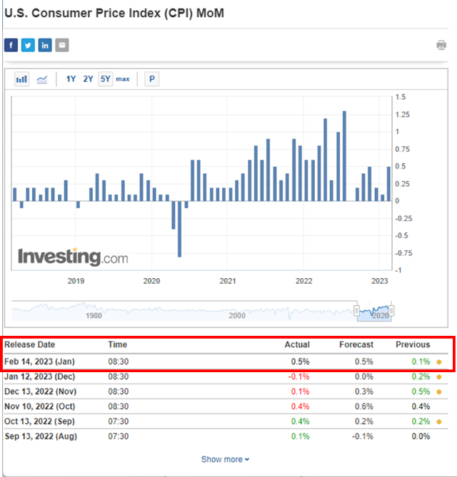 2023년 2월 14일 08:30(우리나라 기준 14일 22:30)에 1월 미국 CPI 소비자물가지수가 발표되었으며, 중요한 것은 CPI 지수 그 자체보다 전월대비(MoM), 전년대비(YoY) 변화량이다.