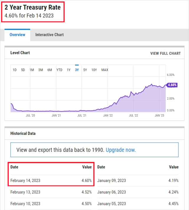 미국 2년물 국채 금리는 이날 4.6%에 도달했다. 2022년 연준의 긴축 사이클이 시작됨과 함께 가파른 상승세를 보인 미 2년물 국채 금리는 통화 정책에 민감하게 반응하는 지표로서 기능한다.