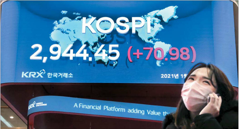 개인투자자들이 1조원어치를 순매수하며 신축년 증시 개장일 코스피지수가 2900선을 돌파했다. 4일 코스피는 전일 대비 2.47% 오른 사상 최고치 2944.45로 장을 마감했다. 코스닥 또한 0.95% 올라 977.62를 기록했다. 2021년 첫 거래일부터 '삼천피(코스피 3000)'와 '천스닥(코스닥 1000)'에 바짝 다가선 모습이다.