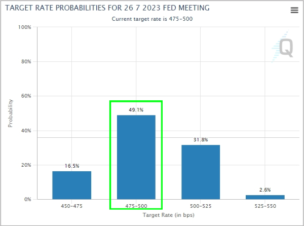 최근 제롬 파월 연준 의장의 의회 연설에서 2023년 연말 미국 기준금리 인하 없다는 발언에도 불구하고, 시장 참여자들 사이에서는 미국 기준금리 인하 기대감이 점차 커지고 있는 실정입니다. 기준금리 전망치를 제공하는 FedWatch에 이러한 기준금리 인하 시기 전망이 잘 드러나 있습니다.