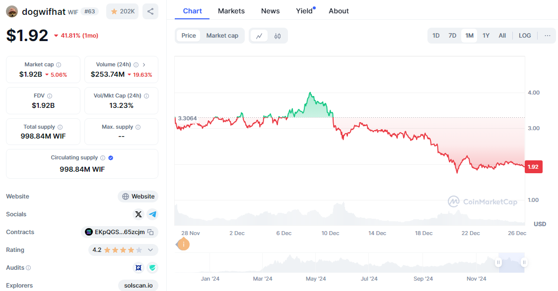 $WIF 코인 시장 분석